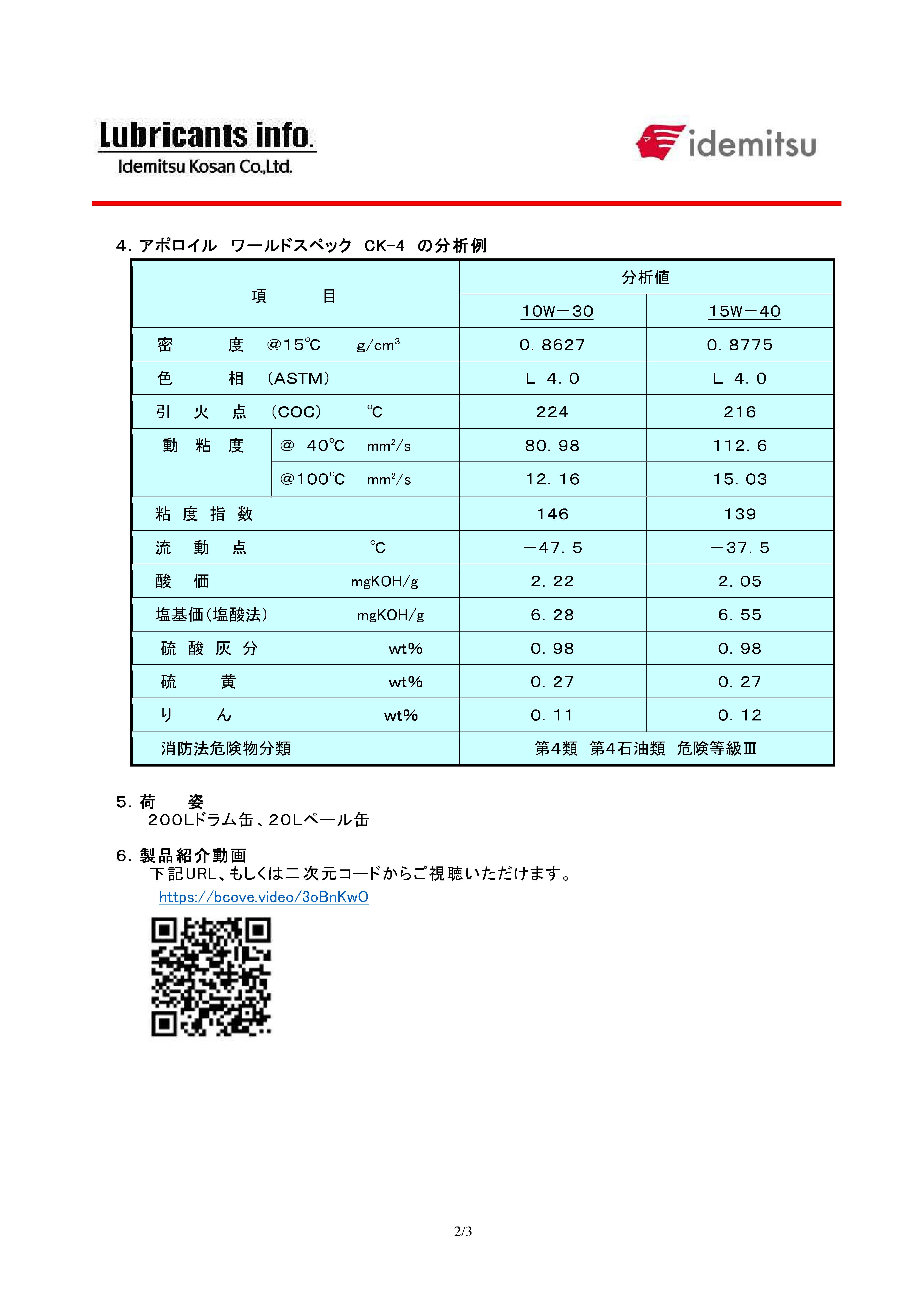 【出光】ワールドスペックCK4 15W40