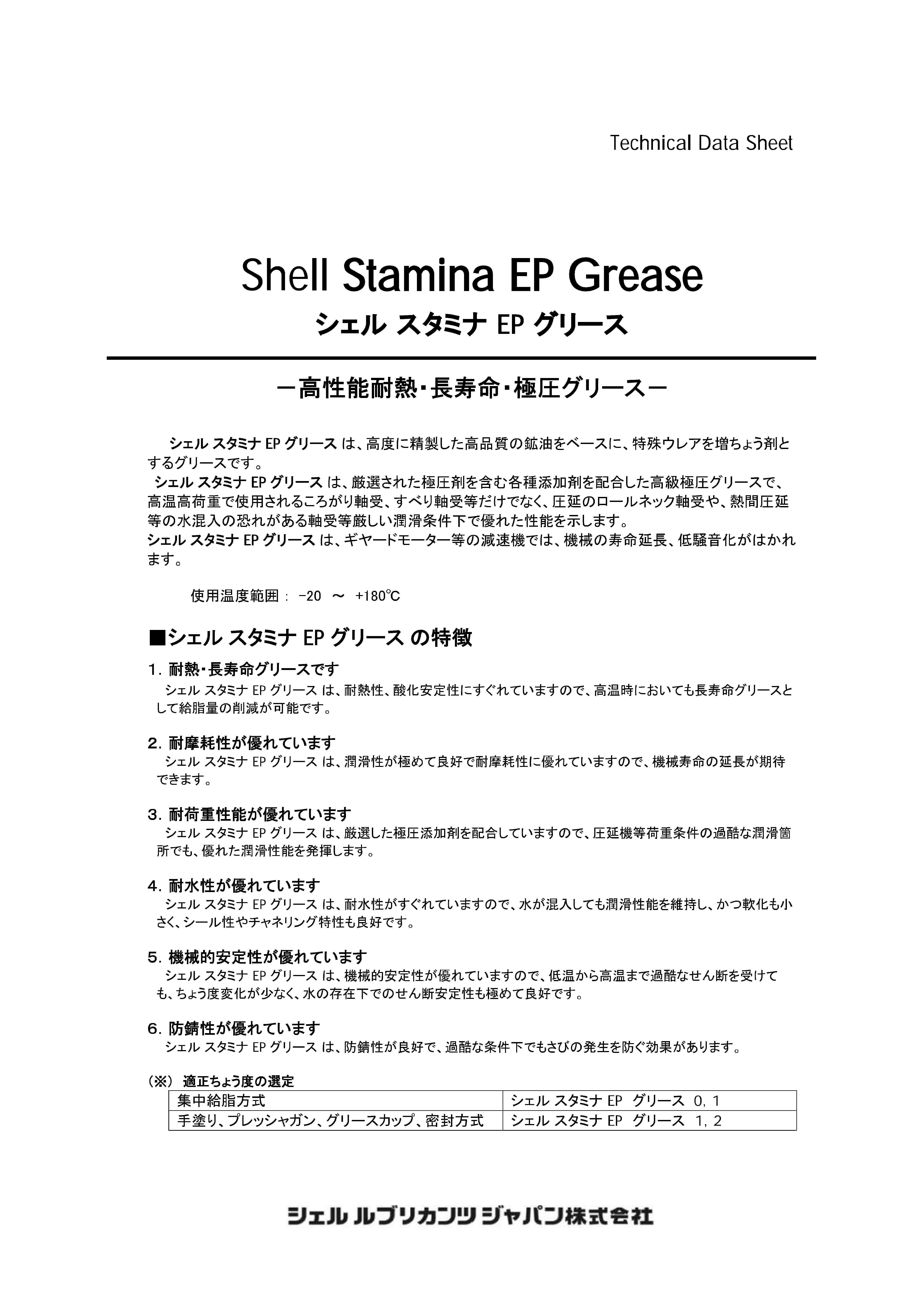 シェル スタミナ EP グリース は、ギヤードモーター等の減速機では、機械の寿命延長、低騒音化がはかれます。